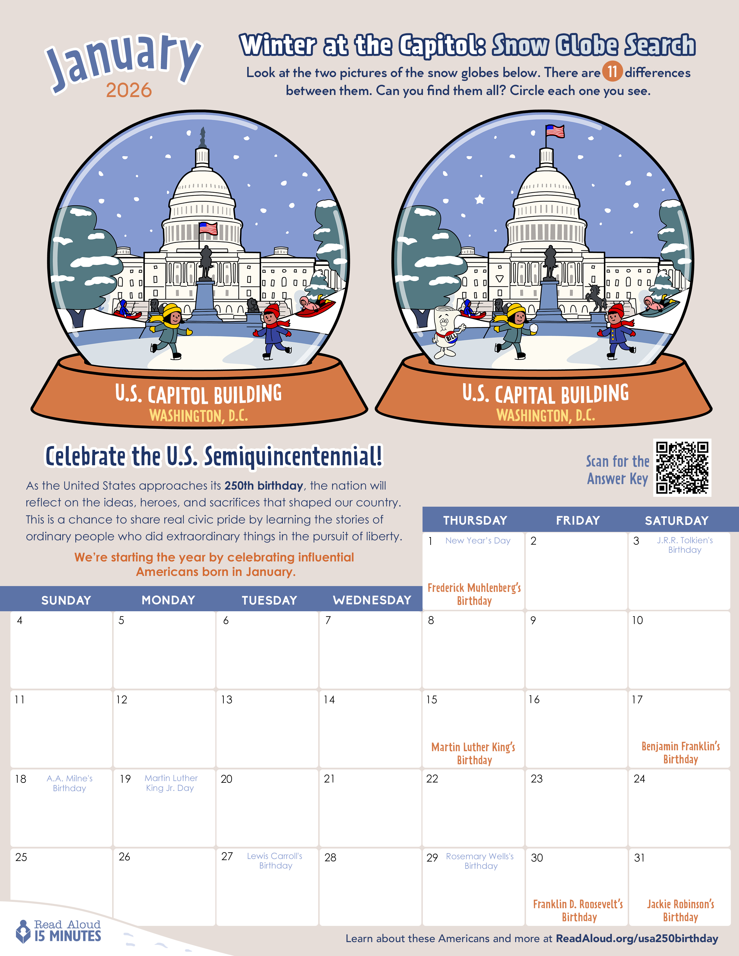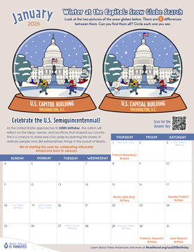 The United States turns 250 in 2026! Each month brings a new way to explore our history, starting with the Capitol Building Snow Globe Search below.