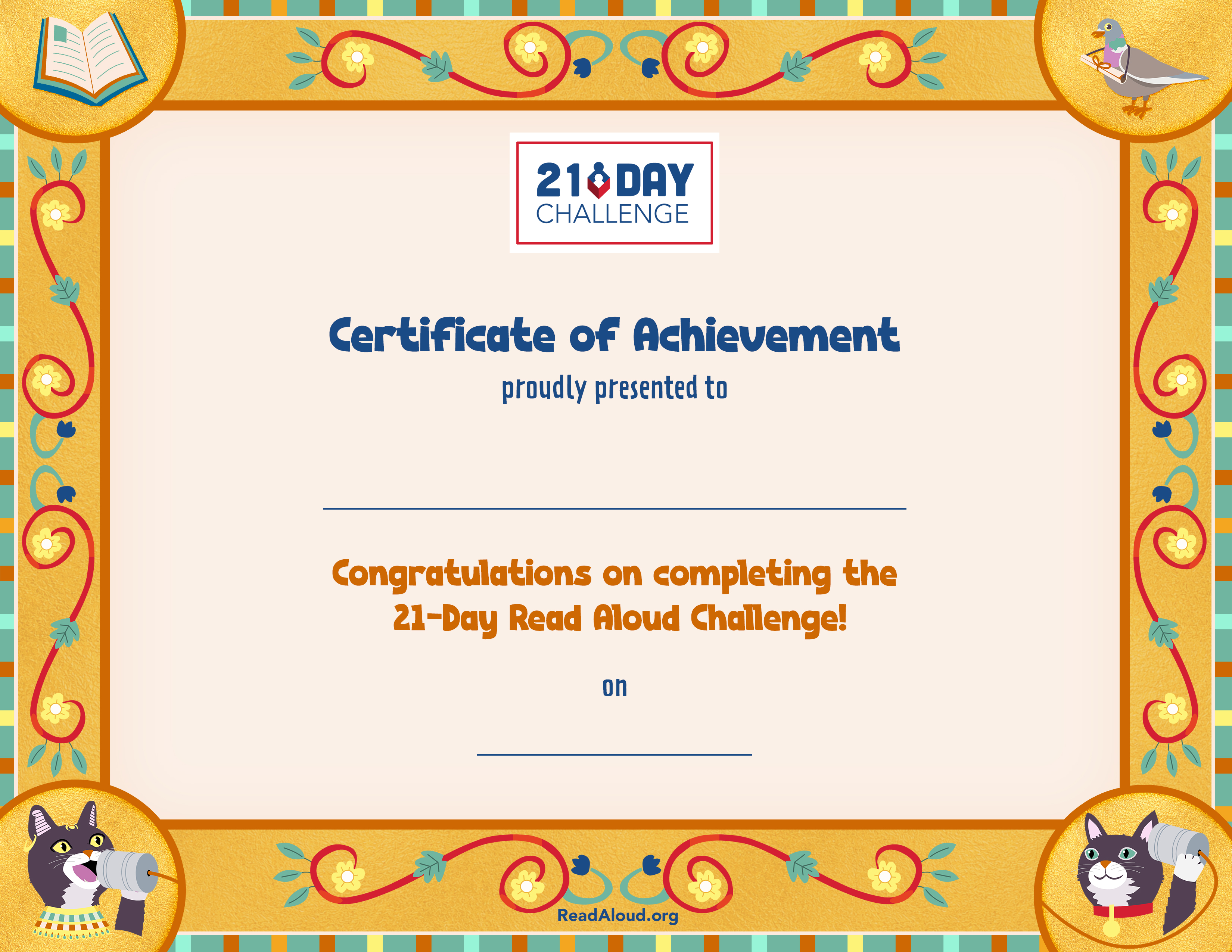 The Read Aloud 21-Day Challenge Parent Night is a great opportunity to get parents excited about reading books with their children; give families tools to enhance their reading experience; demonstrate how to make reading aloud fun and engaging; and to praise them for their commitment to building a daily read aloud habit by accepting the 21-Day Challenge. |